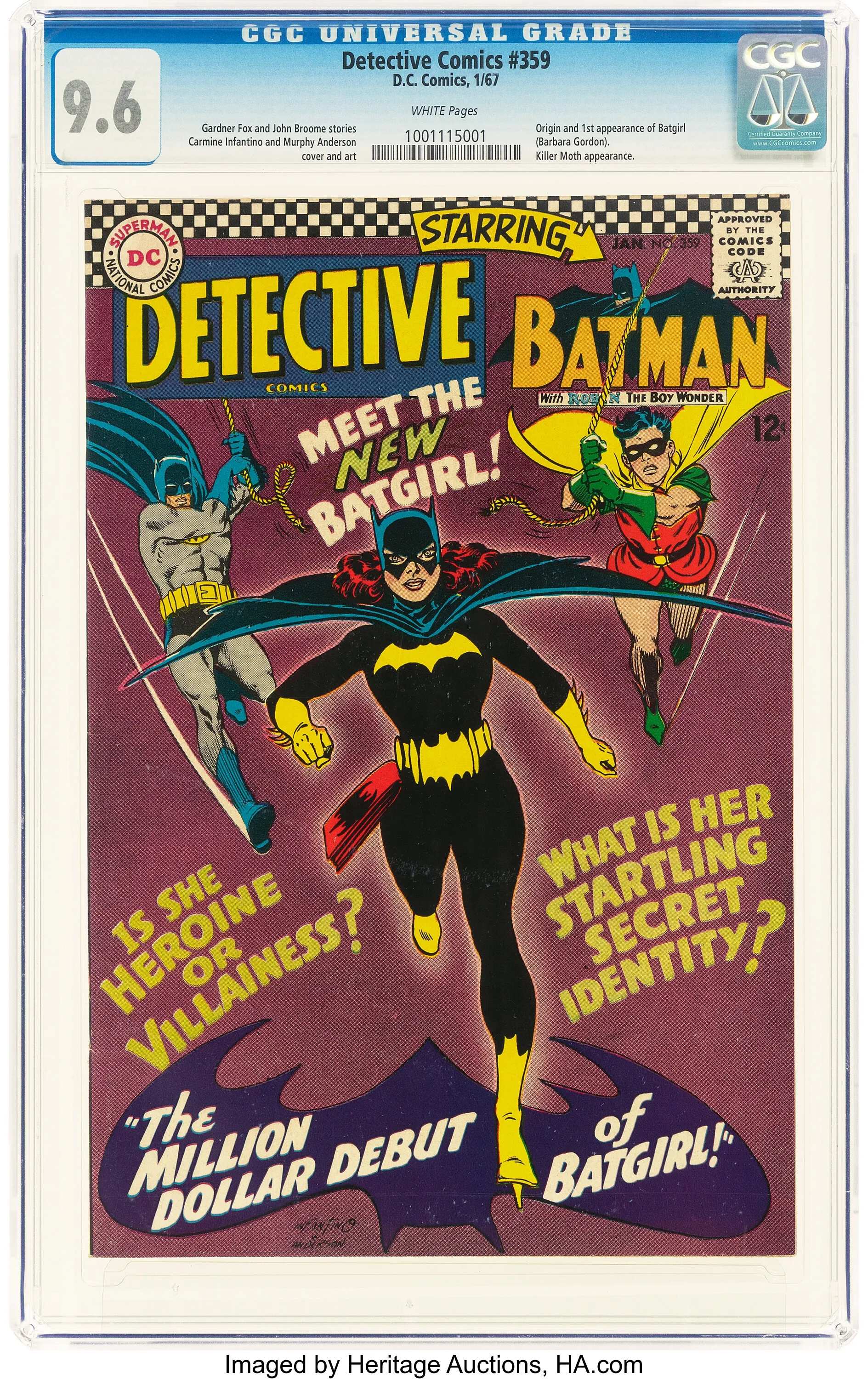 Now let’s talk about comics, specifically a key issue featuring the Bat-Family. Detective Comics #359 marks the first appearance of Batgirl, and a remarkably well-preserved copy graded 9.6 by CGC is currently up for auction. Only three copies have ever received a grade this high or better, with a perfect 9.8 copy last sold five years ago. If you’re looking for a stunning edition of this classic character’s debut, the current bid is $1450, and the auction continues for another 19 days.