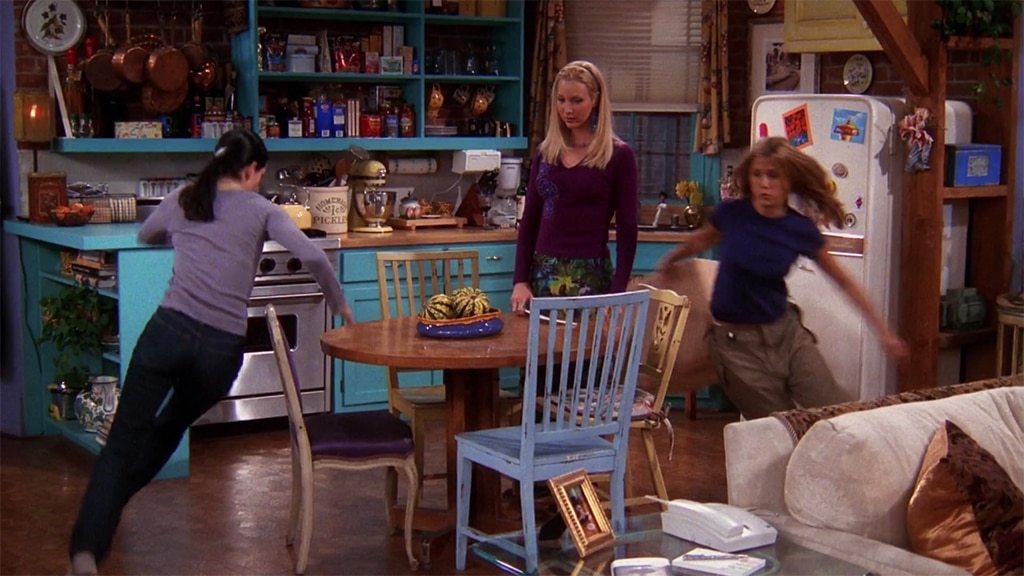 Janice’s question about who’s come close to hooking up reveals some surprising history: Ross and Phoebe once kissed, Rachel and Chandler considered it, and Joey and Monica had a brief awkward moment. We also learn Central Perk used to be a bar! It’s all entertaining, but a little frustrating because nothing actually happens. A Ross and Phoebe romance could have been something special!
