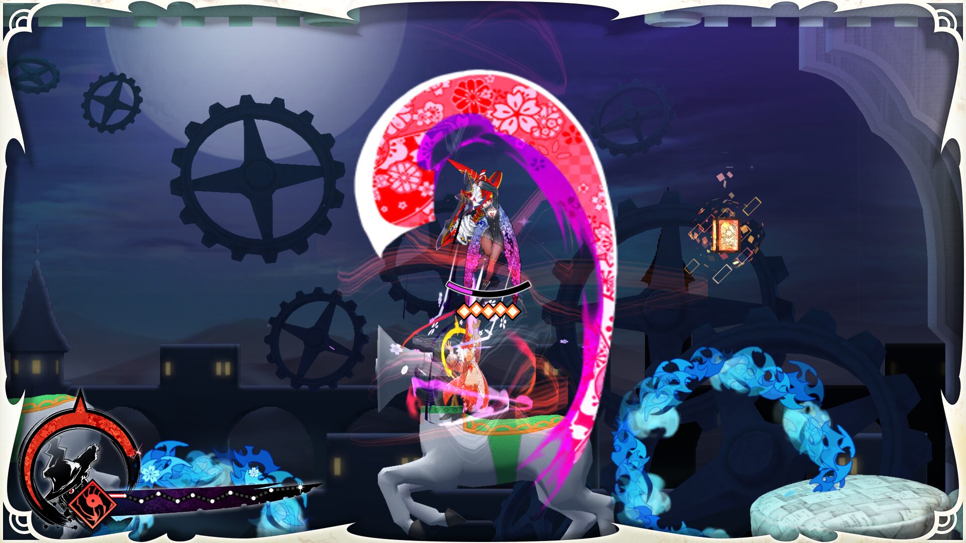 Download the demo on Nintendo Switch 2 or Nintendo Switch and play as Shiroha, a witch wielding the katana “Kamikiri.” She can move incredibly fast and slice through the paper-based levels using her instant-attack sword skill, Setsuna. When Setsuna encounters the Astral Sirius, she’ll gain her first transformation, temporarily boosting her powers.