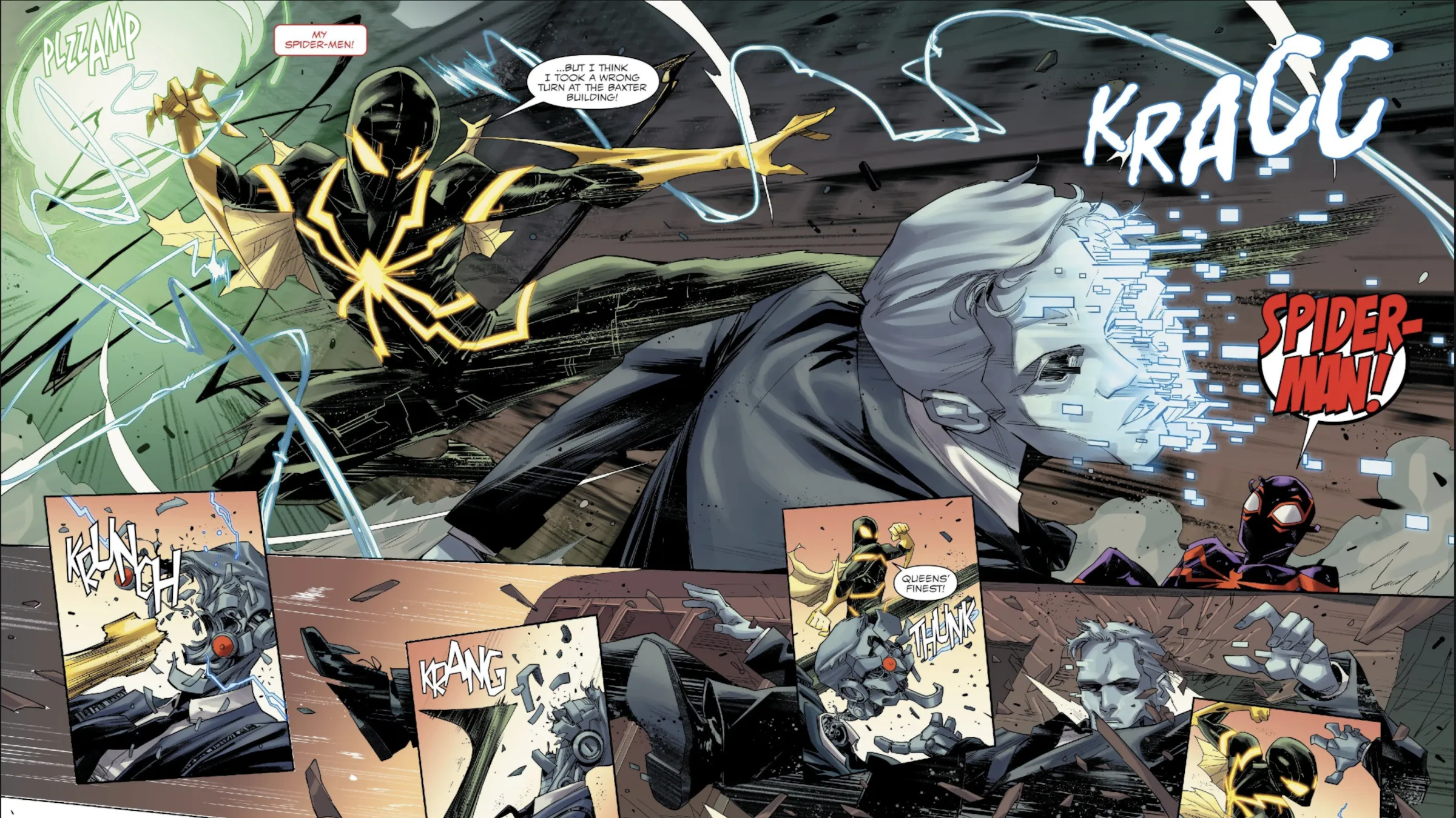 The story reached a climax with Miles facing off against his greatest enemy, Rabble. Driven to defeat Spider-Man, she resurrected the Assessor, a robot with a devastating history with Miles. However, Rabble lost control of the Assessor, who then turned on both of them. Miles fought valiantly, but couldn’t defeat the Assessor and his clone army on his own. Just when all seemed lost, Miles received unexpected help – a miracle granted by the Spider God, Anasi.