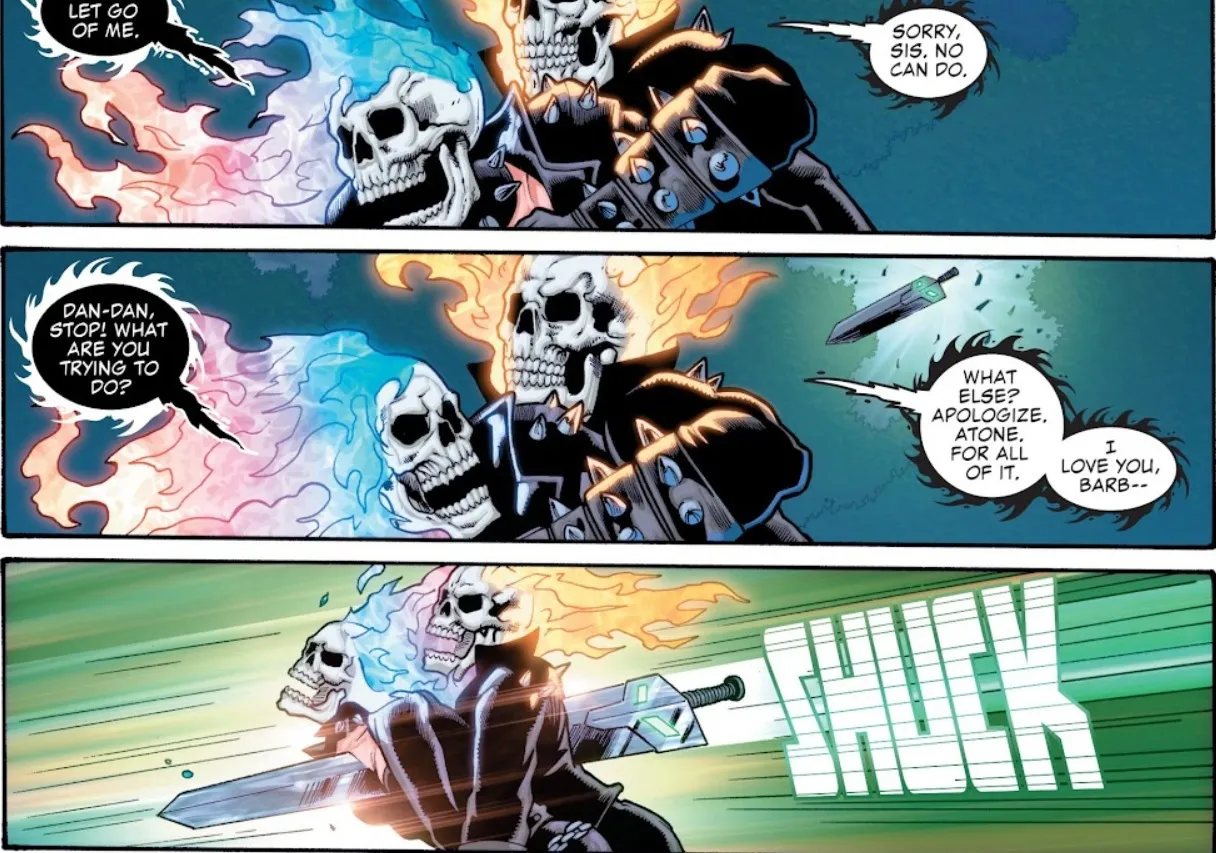Towards the end of the story, Johnny attempts to bring his brother back to life, but the defeat of Corruption and the Spirit of Violence means the Spirits of Vengeance can no longer easily switch hosts. With Danny buried beside Barbara, it appears his time in the Marvel Universe is over—for now. However, characters often return from the dead in Marvel comics, and resurrections are common. Johnny Blaze himself has overcome death many times. You can see Danny’s final scenes below, and fans shouldn’t worry too much about the Spirit of Vengeance, as there are other hosts available.