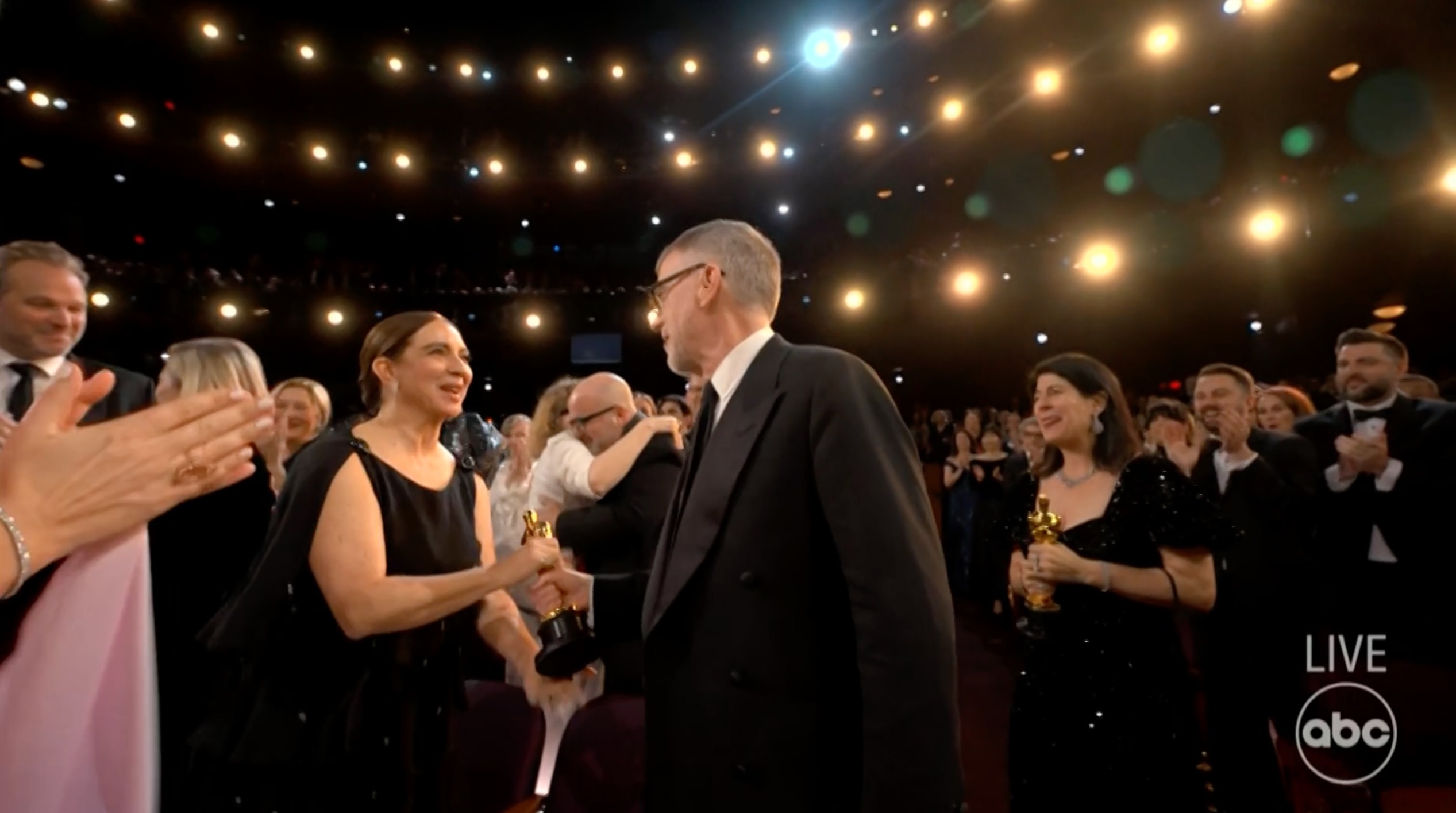 Paul’s partner, Maya Rudolph, was overjoyed for him, covering her face with her hands and smiling brightly. He gave her the Best Director trophy he’d just received before heading onstage to give his speech.