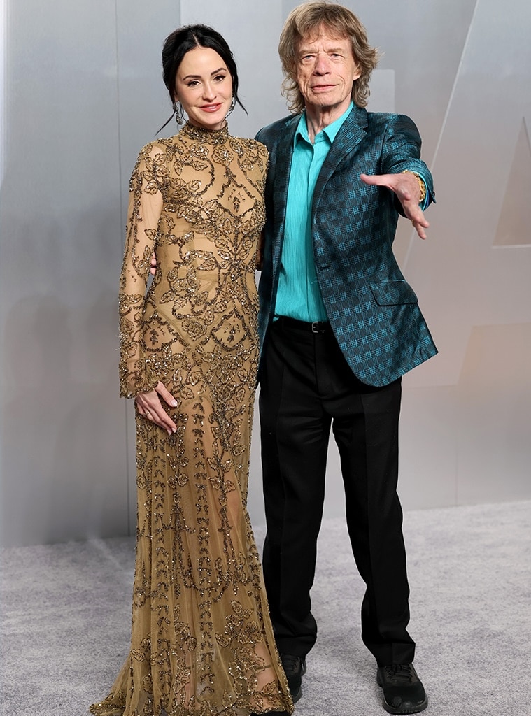 I always love seeing how people express themselves through style, and this recent outing was a perfect example! Mick, at 82, looked so sharp in a classic dark blue checkered jacket paired with a lovely sky blue button-down. And Melanie, 38, really turned heads in a beautiful, sheer brown dress – the floral embellishments added such a fun, sparkly touch. It just goes to show you can have fun with fashion at any age!
