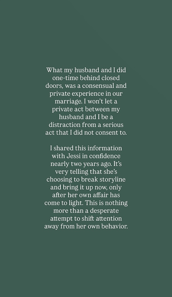 After Demi responded to the claim about Jessi’s husband, Jessi criticized it, calling it a carefully crafted public relations statement.