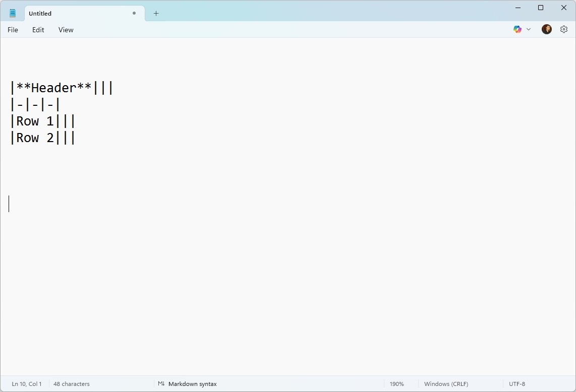Starting with version 11.2510.6.0 for Windows Insider Program users, Notepad now supports tables. This is part of ongoing improvements to Notepad’s Markdown features. It’s not a full spreadsheet program like Excel, but it lets you easily create basic tables to organize information directly within Notepad.