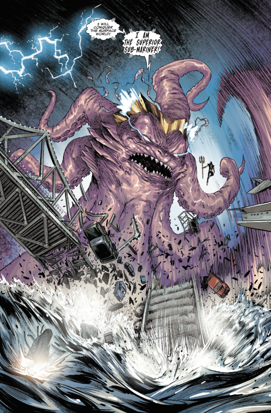 In *New Avengers* #4, Namor finds himself in an unusual and difficult situation. The Atlantean king is violently attacking his fellow heroes, but he isn’t acting of his own free will. Normally, Namor controls sea creatures with his mind, but this time, he’s the one being controlled. A villain named Imperius Rex has turned Namor’s own powers against him, turning him into a puppet to harm his teammates. Imperius Rex reveals that he has much larger and more dangerous plans for this double agent.