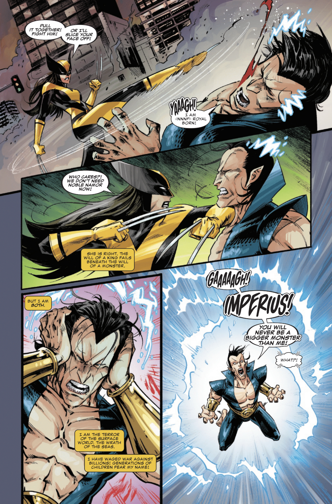 Wolverine plays a crucial role in Namor regaining control of himself. During the toughest part of the fight against Imperius Rex, Wolverine is battling a mind-controlled Namor, desperately trying to free him. Namor even tries to provoke Wolverine into killing him as a way to end things, but she refuses. Ultimately, it’s Wolverine’s words – telling him they don’t need a ‘heroic’ Namor – that break through and allow him to reclaim his power and embrace his more fearsome nature. This moment isn’t lost on Namor, and he finally addresses Laura as ‘Wolverine’ – a significant gesture considering his proud and often difficult personality. This shows the team is truly uniting, which will be vital in the ongoing fight. More importantly, it’s a moment of understanding for Namor, revealing a depth of character and his acceptance that even he sometimes needs assistance. While Namor will likely never be truly humble, this experience demonstrates the complexity of his character.