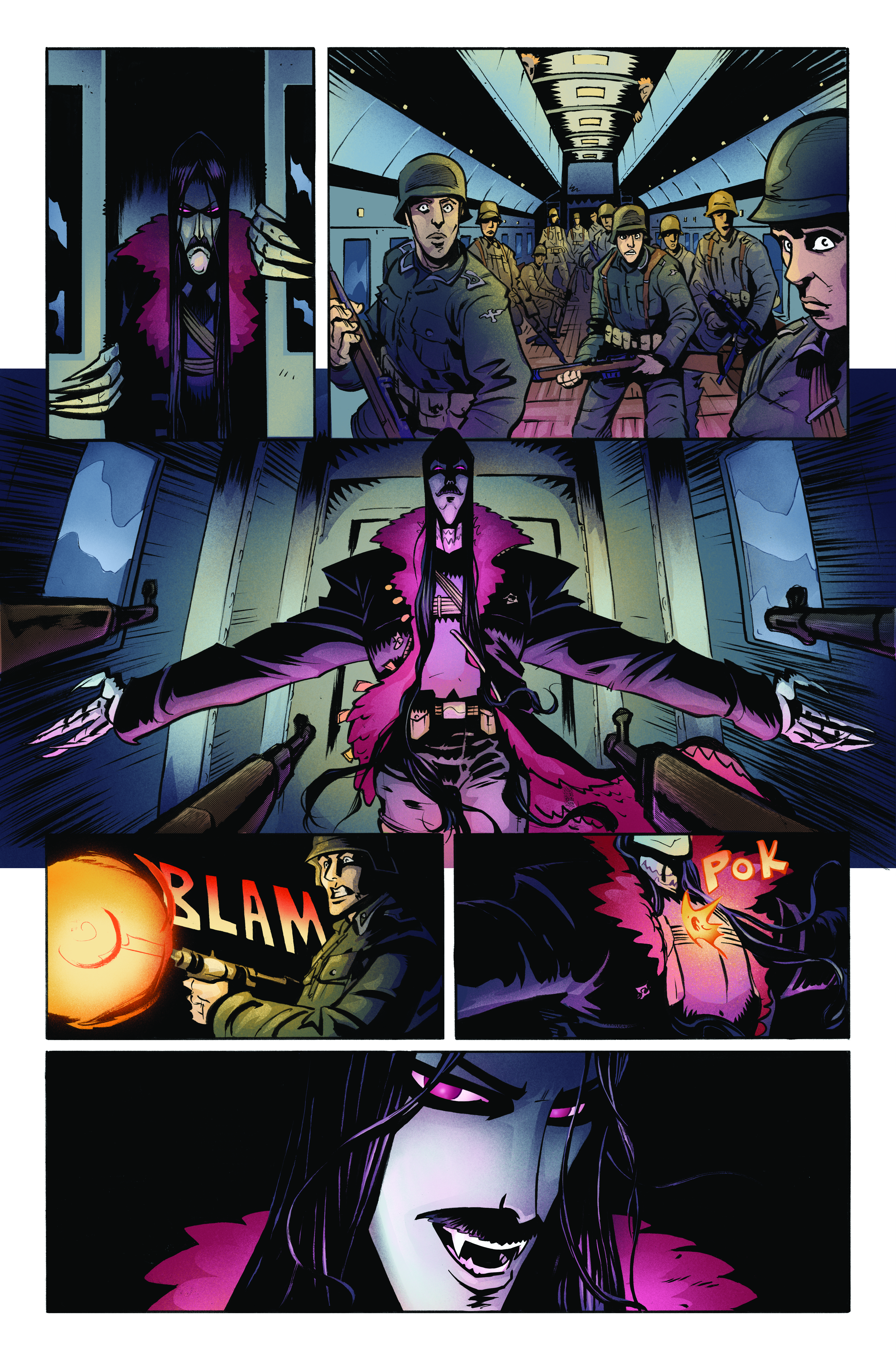 This is an early review, so rest assured, there are no spoilers! Here’s the premise: Dracula is back from the dead and surprisingly, he’s seeking redemption. His plan? Join forces with the British during World War II. He’ll be dropped into a Nazi train packed with soldiers, supervillains, and a dangerous vampire plague that could unleash a new wave of terror. Dracula must fight his way through, confronting his past and battling the evil Hazel and Ivy, who are leading the Nazis and seem determined to see him fail. It’s a complex setup, but Operation: Iron Coffin #1 handles it brilliantly and hints at a story with stakes far beyond simply defeating the Nazis.