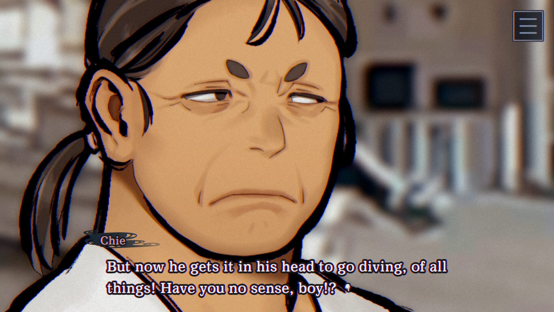As the most respected diver among the women of Kameshima, she’s a key figure on the island. Even when she was learning, she was a gifted diver, and people started calling her “Chie the Mermaid” because she moved so gracefully underwater.