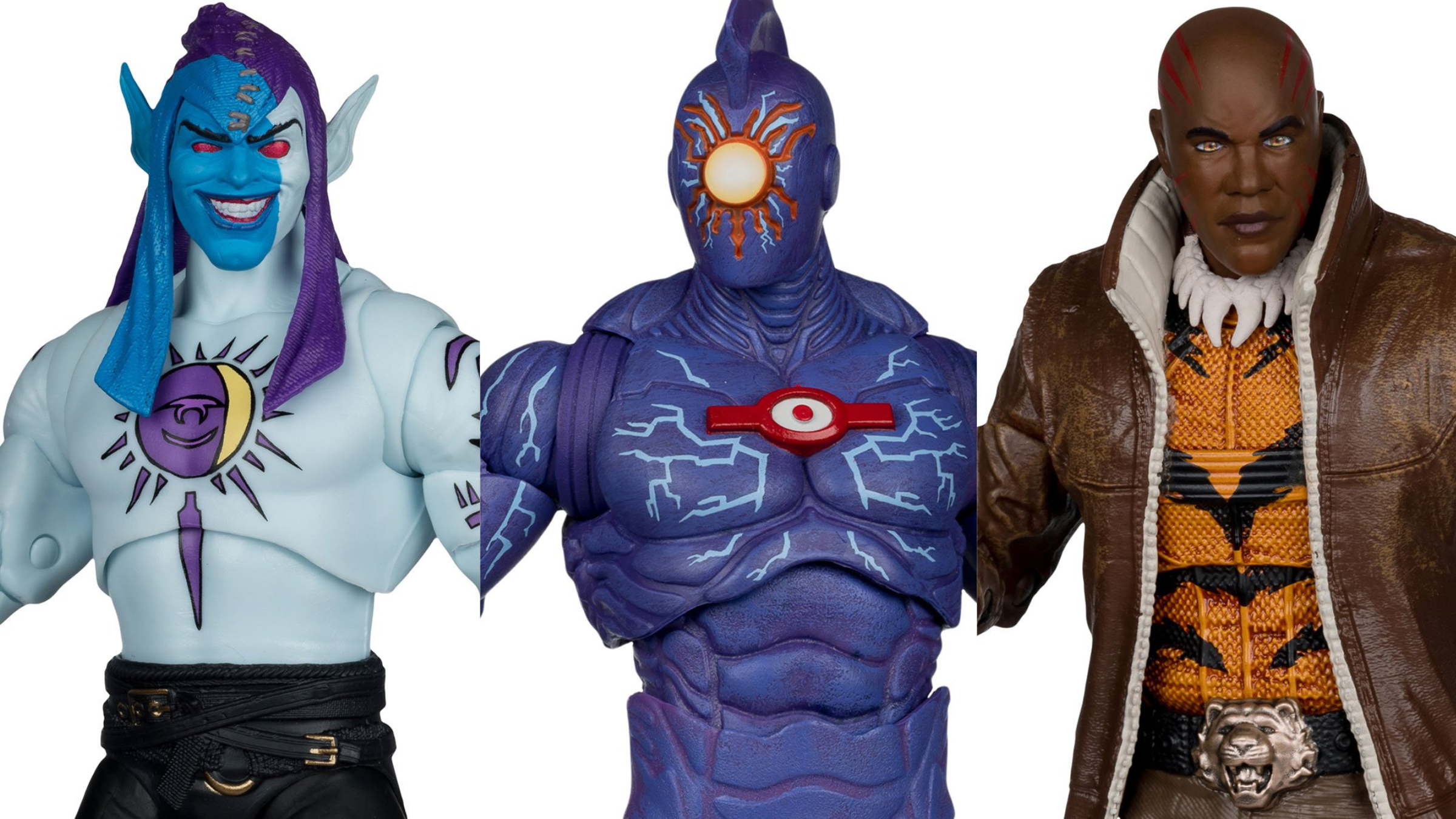 I’m absolutely loving the character designs here! It’s amazing to see Eclipso brought to life with his classic purple and blue look – it’s straight out of the comics and so iconic. And O.M.A.C.? Seriously cool! That vibrant, saturated purple makes him look incredibly powerful. But honestly, the Bronze Tiger really steals the show for me. His New 52 design is just fantastic – the tiger stripes and necklace really elevate the character, and you can feel his strength. He’s a martial artist who can go toe-to-toe with Batman, and that really comes across in the design. While all three are great, if I could only pick one to take home, it would definitely be the Bronze Tiger!