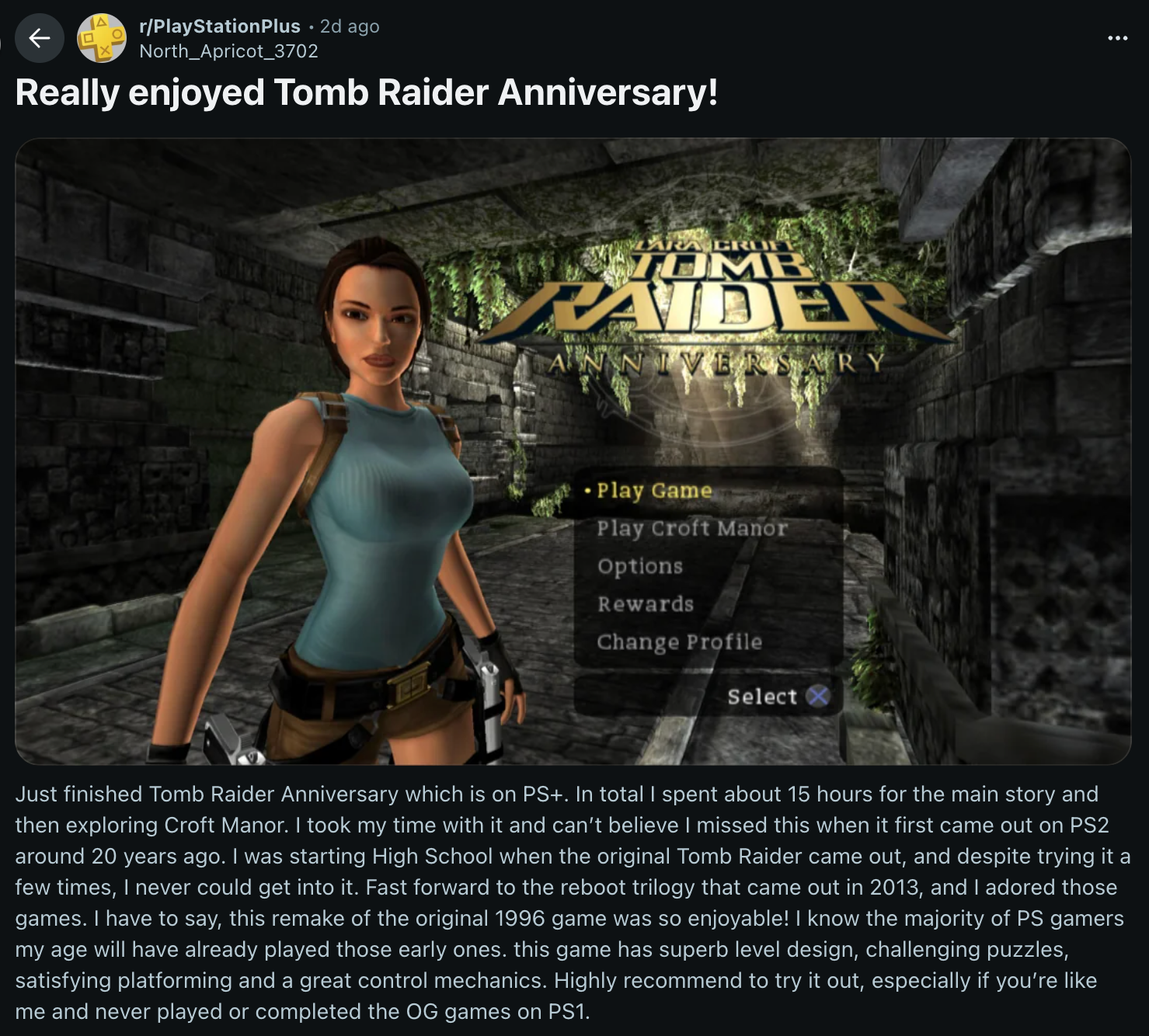 I was scrolling through the PlayStation Plus subreddit and saw this post that was getting a ton of love. It was basically just someone hyping up a PS2 game, talking about how amazing the levels are and how tough but good the puzzles are. It quickly shot to the top, which made me think a lot of other people feel the same way. And yeah, checking the comments confirmed it – everyone seems to agree it’s a really great game!