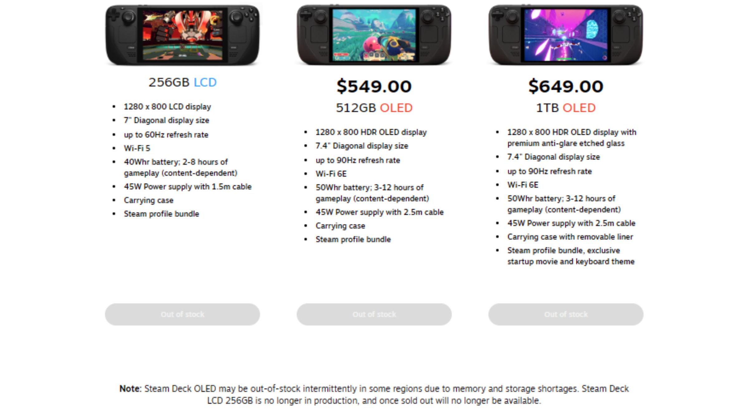 Right now, all versions of the Steam Deck are showing as unavailable on the Steam store in the US. Valve has explained that the Steam Deck OLED is experiencing occasional stock issues in some areas because of limited supplies of memory and storage. This suggests it will likely be a while before more Steam Decks are available.