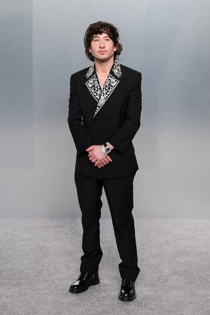 The 46-year-old actress wore a floral Dior gown without straps as she and Bobby arrived at the award show, hosted by Conan O’Brien, at the Dolby Theatre in Hollywood.