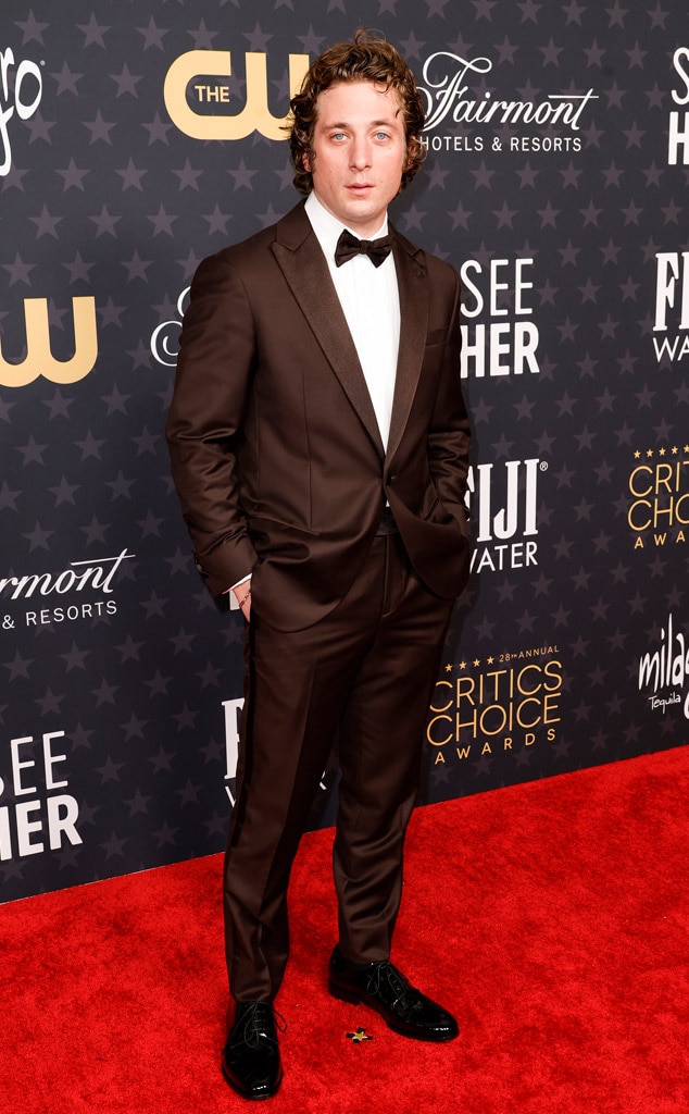 At the 2023 Critics Choice Awards, he opted for a brown tuxedo by Giorgio Armani.