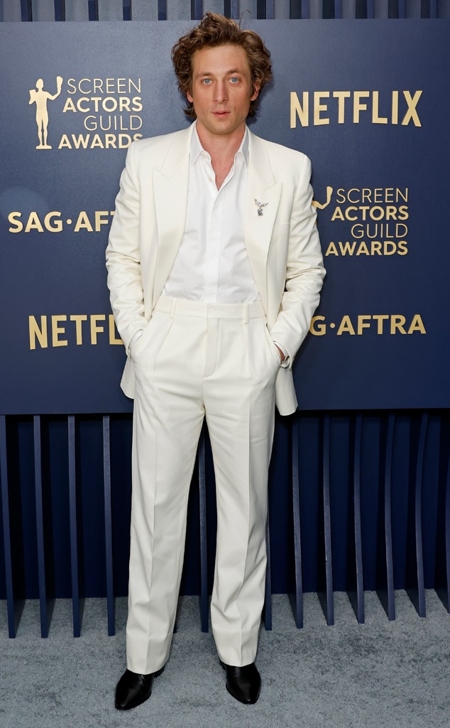 At the June 2024 premiere of The Bear, he looked incredibly stylish in an off-white Calvin Klein suit, paired with a black silk tie and white Manolo Blahnik loafers.