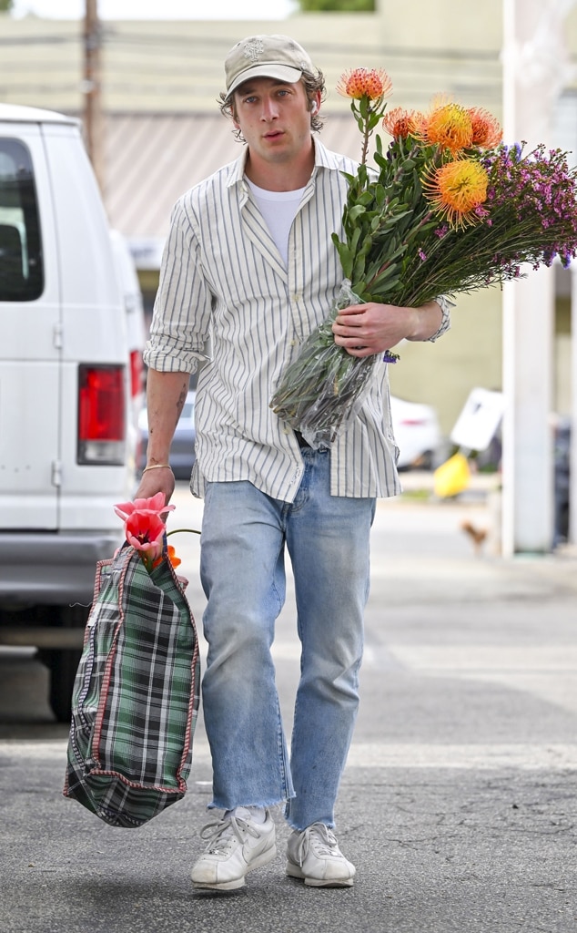 The award-winning actor looked great in a casual outfit – jeans, a striped shirt, and a baseball cap – while picking up flowers at a Los Angeles farmer’s market on February 25, 2024.