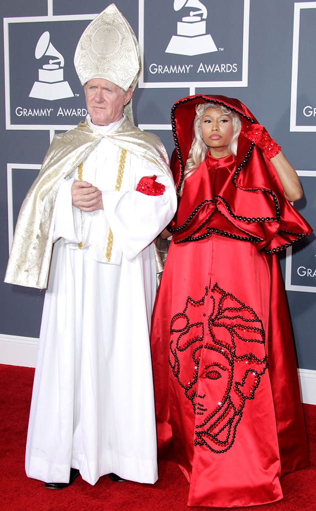 Wow! The rapper showed up in a bright pink bellhop outfit, complete with a matching suitcase. Of course, he had his evening clothes packed neatly inside.