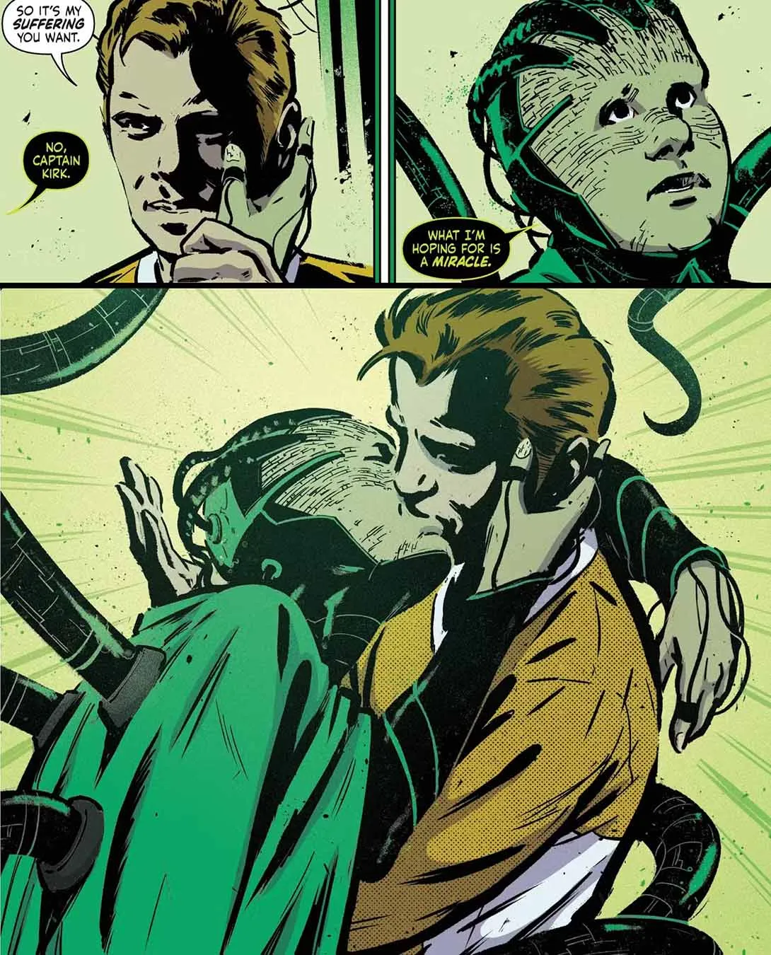 Many questions remain, particularly surrounding the return of Captain Kirk. The way he’s been brought back feels less like a true resurrection and more like cloning, which is unsettling. We also don’t fully understand Agnes’s goals. While she claims to be acting to save the Federation, her kiss with Kirk hints at a more personal connection. Was bringing Kirk back solely about giving the Federation a chance, or is there something deeper going on? It seems we’ll get more answers soon. According to co-writer Jackson Lanzing, the meaning of a key moment in issue #3 will become clearer later on, and may change how we currently interpret it.