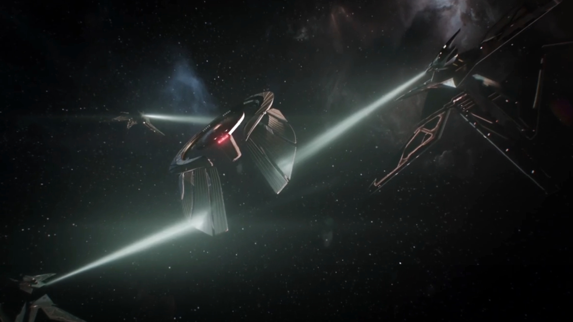 The USS Athena is positioned outside the barrier with only a minimal crew. Captain Ake has taken the ship on a secret mission, though Admiral Vance seems to have quietly allowed it. Unfortunately, the Athena is soon chased by Venari Ral ships, which force it out of warp and capture it with tractor beams. Ake cleverly orders the ship to separate its saucer section and utilize its secondary warp engines. This allows the saucer to escape into a nebula while the main part of the Athena is left behind.