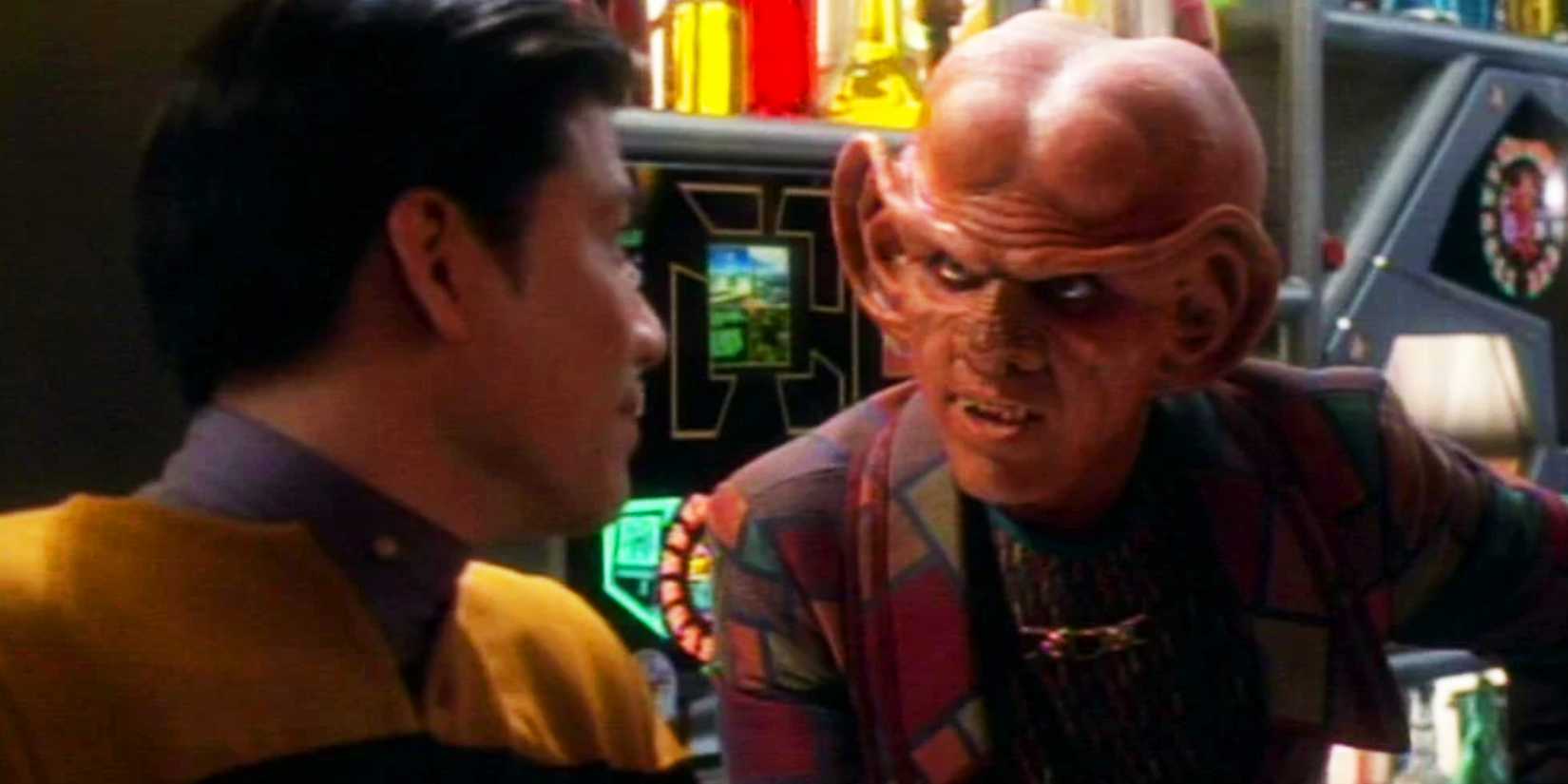 Despite being warned about the Ferengi at Starfleet Academy, Ensign Harry Kim almost gets tricked by Quark. He didn’t return to the world of Star Trek: Deep Space Nine until Star Trek: Lower Decks season 5, episode 9, “Fissure Quest,” which featured multiple versions of himself – several Ensign Harry Kims and one Lieutenant Harry Kim – all appearing aboard the starship Anaximander.