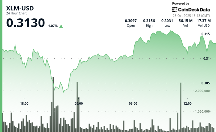 XLM had a mild temper tantrum Tuesday, dropping from $0.3137 to $0.3123 in a 24-hour period ending Oct. 23 at 14:00 UTC. The token moved within a narrow $0.0132 range (4.2%), which is the kind of volatility that makes you question your life choices but not enough to make you panic.