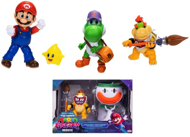 The first wave of 5-inch action figures from JAKKS Pacific includes everything fans would want: Mario with a yellow Luma companion, Yoshi with several accessories, Rosalina with her iconic wand, and Bowser Jr. with a paintbrush.