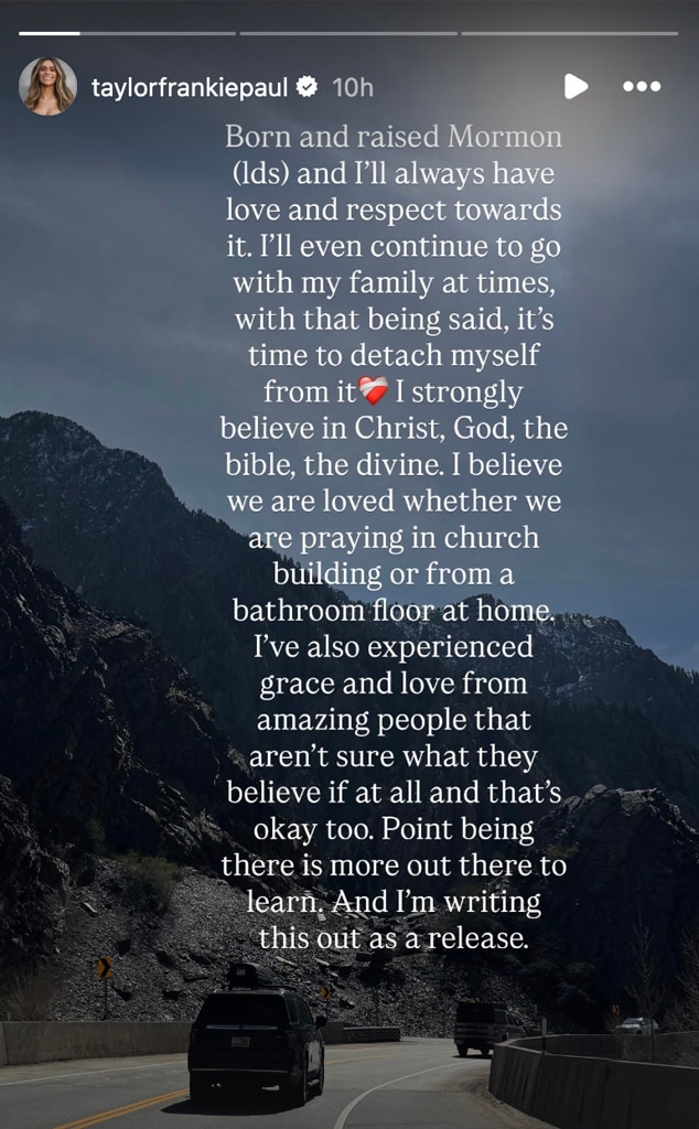 Taylor shared on Instagram that while she grew up Mormon and will always respect her upbringing, she’s choosing to step away from the religion. She still believes in Christ, God, and the teachings of the Bible, and feels that faith isn’t limited to a specific place – people can connect with the divine anywhere, even in private moments at home.