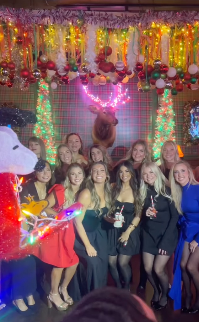 Fans noticed Taylor Swift in a video posted by Ana Demmer, who is dating Kansas City Chiefs offensive lineman Creed Humphrey. The short clip showed Taylor with other wives and girlfriends of players—including her friend Brittany Mahomes—posing in front of holiday decorations and a large Snoopy Christmas figure.