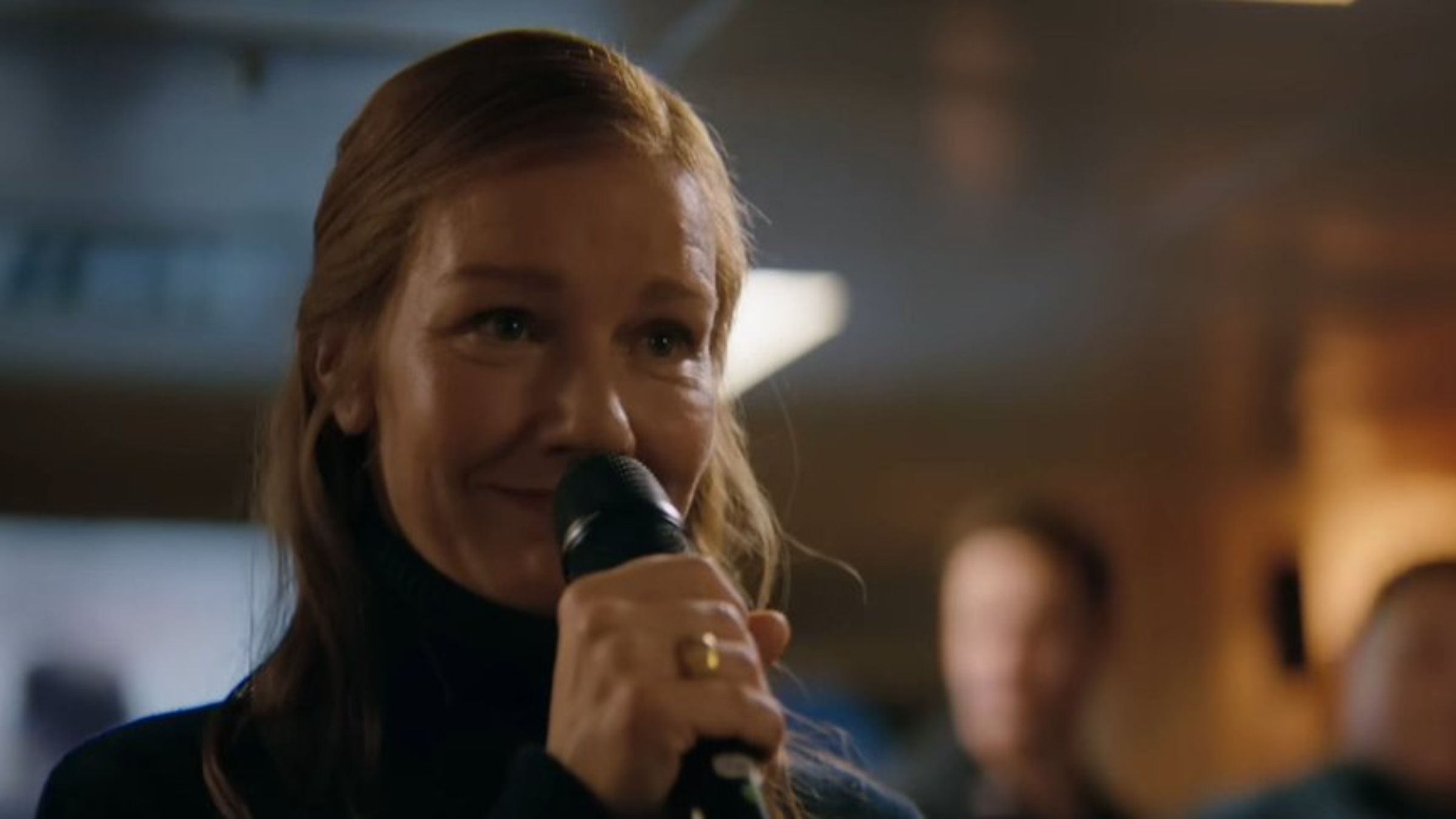 Initially, Stratt doesn’t join the celebration. Instead, she’s on the ship’s deck, enjoying the ocean breeze. Dr. Grace, also feeling detached from the party, goes to be with her. They discuss whether it was difficult for Stratt to ask people to risk their lives, and she replies that it wasn’t. Like in the book, she believes sacrificing three lives is preferable to allowing an ice age to occur. Surprisingly, Stratt then joins the small karaoke gathering, grabs the microphone, and delivers an emotional performance of Harry Styles’ “Sign of the Times.”