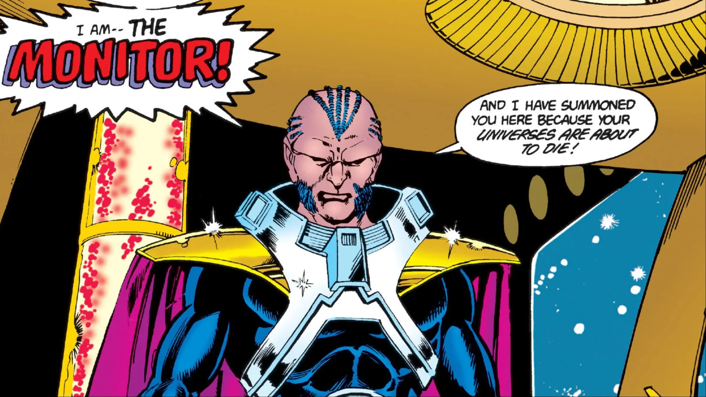 The Monitor and the Anti-Monitor were brothers, locked in an ancient rivalry that played out like a game of chess, culminating in the Crisis on Infinite Earths. The Monitor kept watch over the four main Earths, anticipating his brother’s destructive arrival. When the conflict finally began, he put his long-prepared plan into action. Knowing he wouldn’t survive the coming battles, he relied on a single hope: Alexander Luthor. He trained the child, setting in motion the events that would ultimately defeat the Anti-Monitor. In a heartbreaking turn of events, the Monitor was killed by Harbinger, the only person he loved and who loved him in return – a tragic end for a selfless hero.