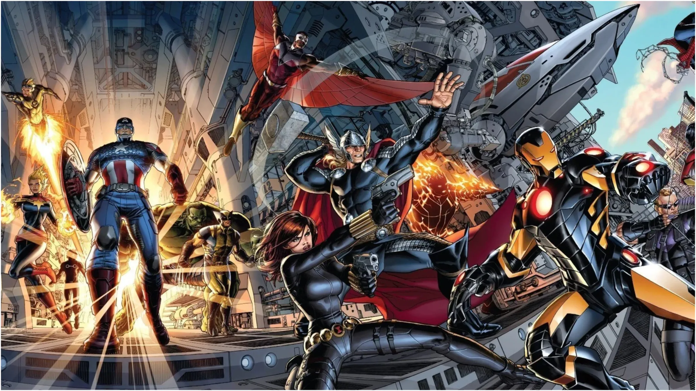 Jonathan Hickman’s run on the Avengers comics created what many fans consider the ultimate Avengers team, known as the “Avengers Machine.” Built by Captain America and Iron Man, this team was designed to handle any danger. It featured a diverse roster, including powerhouses like Captain Universe, Manifold, Hulk, Thor, Hyperion, and Captain Marvel. Alongside them were strong heroes like Iron Man, Spider-Man, Spider-Woman, and Smasher, and skilled fighters such as Captain America, Wolverine, Hawkeye, and Black Widow. With this combination, no challenge seemed too great. Later additions like Nightmask, Starbrand, Ex Nihilo, and Abyss further bolstered the team’s capabilities.