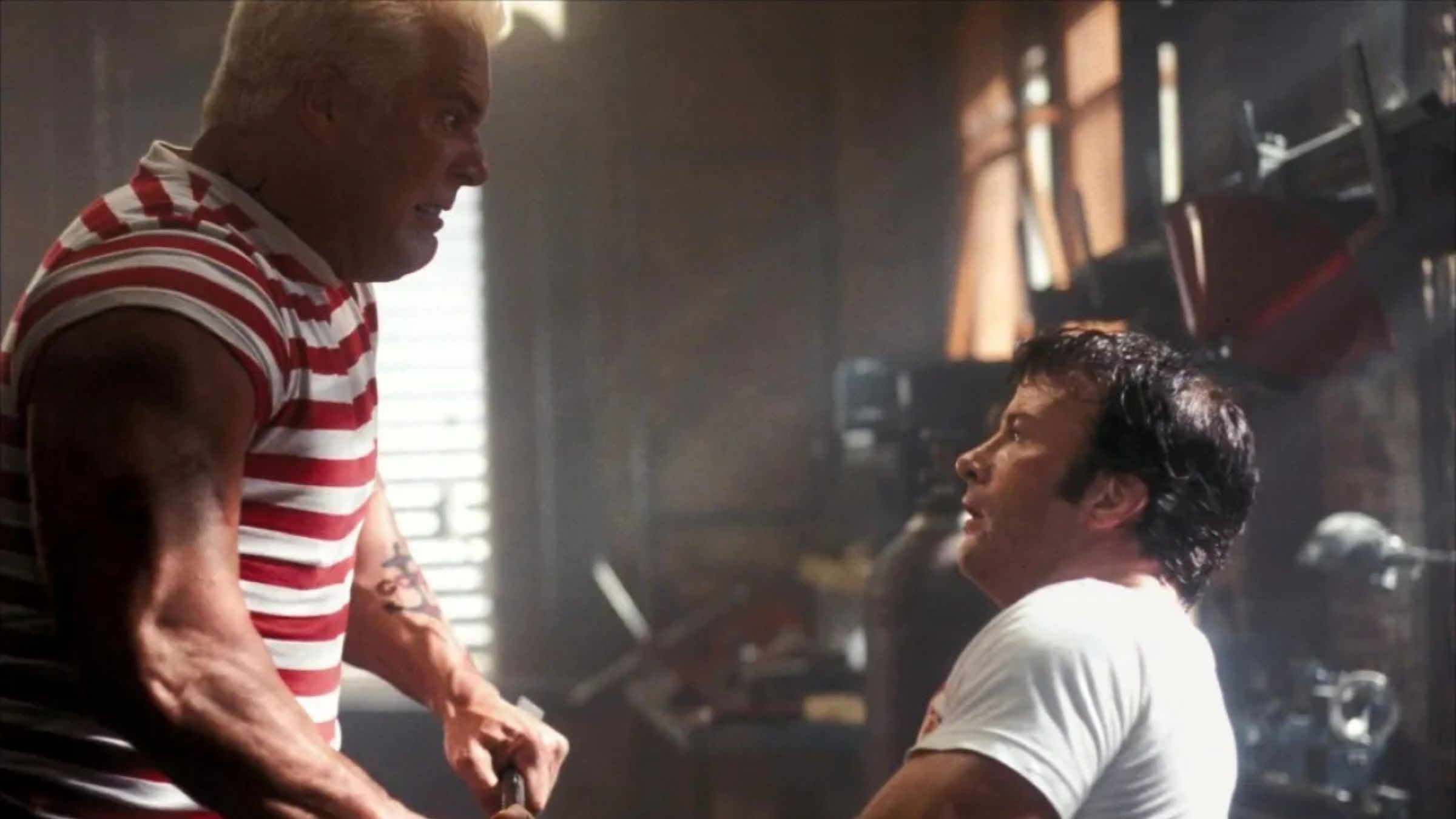 Often missed when people talk about comic book movies, The Punisher features one of the most fun and memorable fight scenes ever filmed. The movie centers on Frank Castle (Thomas Jane), a former FBI agent who becomes a vigilante seeking revenge on the criminals who killed his family. Before the story wraps up, Frank is attacked in his apartment by a massive assassin called The Russian (Kevin Nash). What happens next is a brutal but surprisingly playful fight – The Russian throws Frank around like a toy, barely reacting to stabs and bullets, while Frank fights back using anything he can find, from boiling water to stairs, to overcome his stronger opponent. The fight ends with a shocking and violent moment involving a weight bench, making it a standout action sequence from the early 2000s.