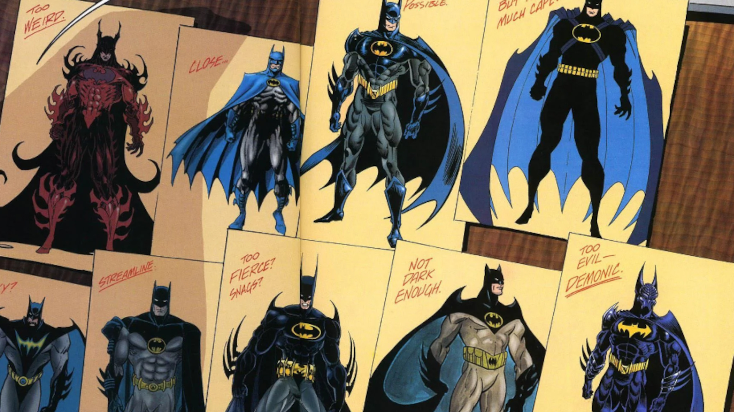 In the ’90s, a comic book titled “Batman: KnightGallery” was released as a standalone Elseworlds story. The plot revolved around the discovery of Bruce Wayne’s journal, eleven years after Batman’s supposed disappearance, which contained various sketches of different versions of Batman, Robin, and the Batmobile. Among these designs, one particular Batman suit stood out for its extreme spikiness. To put it mildly, this suit was covered from top to bottom with sharp edges, featuring enormous spiked gauntlets that extended as long as Batman’s forearms. This design was so far-fetched that it’s hard to imagine anyone seriously considering it for use in the field. It seems this particular Batman suit never made it beyond the concept stage.