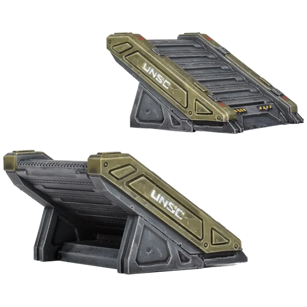 Before, you could add different types of terrain to battles, and some terrain even had different setups. Now, with the Flashpoint update, we’re adding interactive scenery! You can now use two UNSC Man Cannons to launch your team across the battlefield.