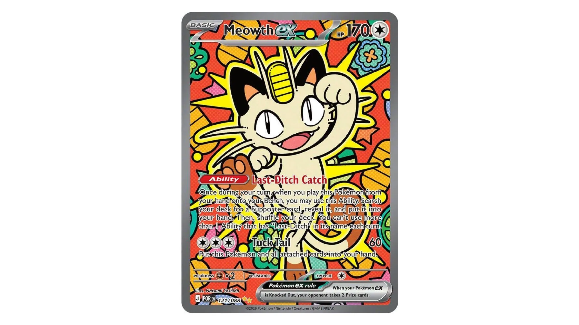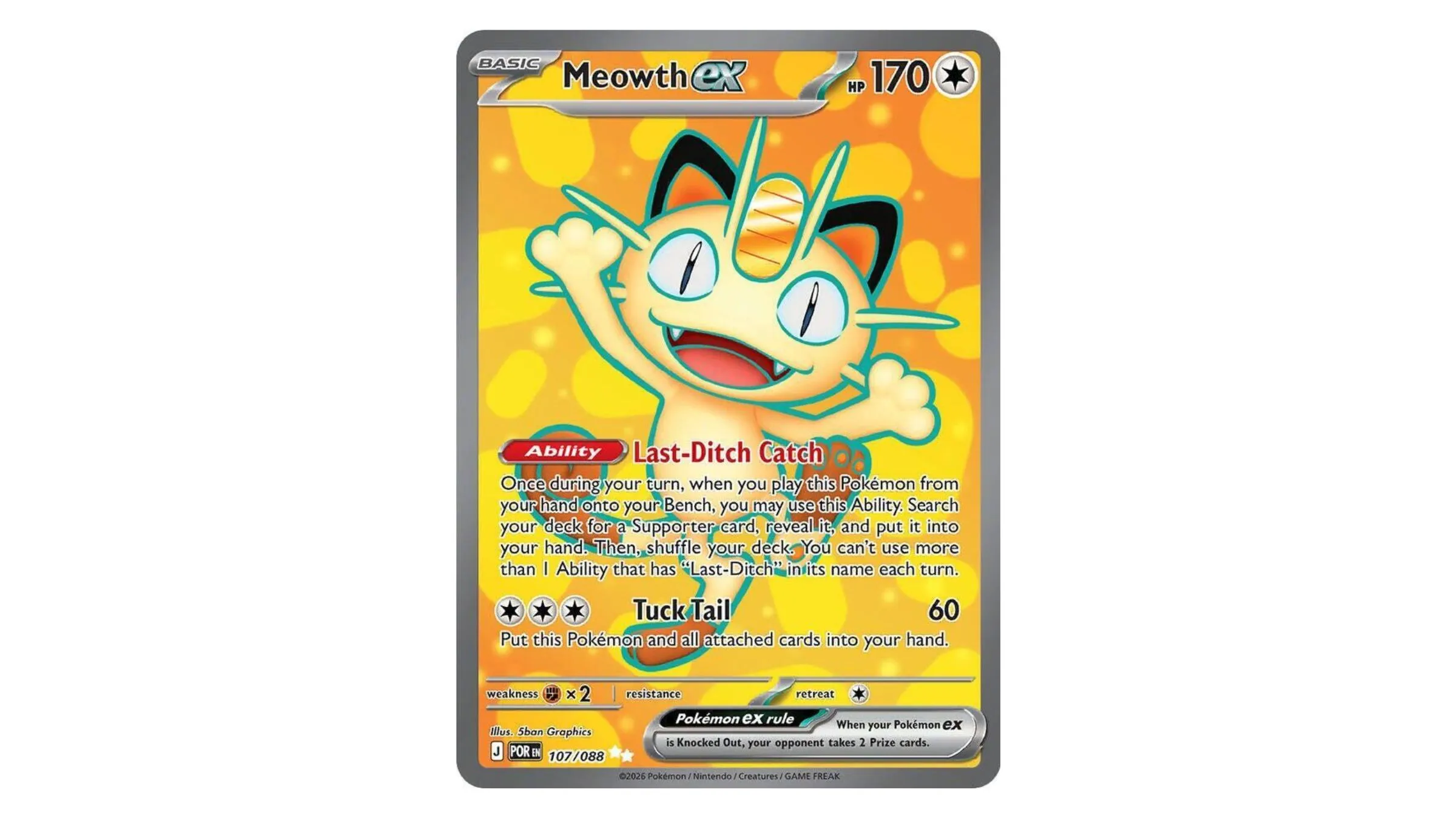 Meowth is a key ex card in this new collection. It’s a popular Pokémon, and interestingly, it’s not fully evolved – making its appearance as one of the valuable cards in the Perfect Order set quite fitting.