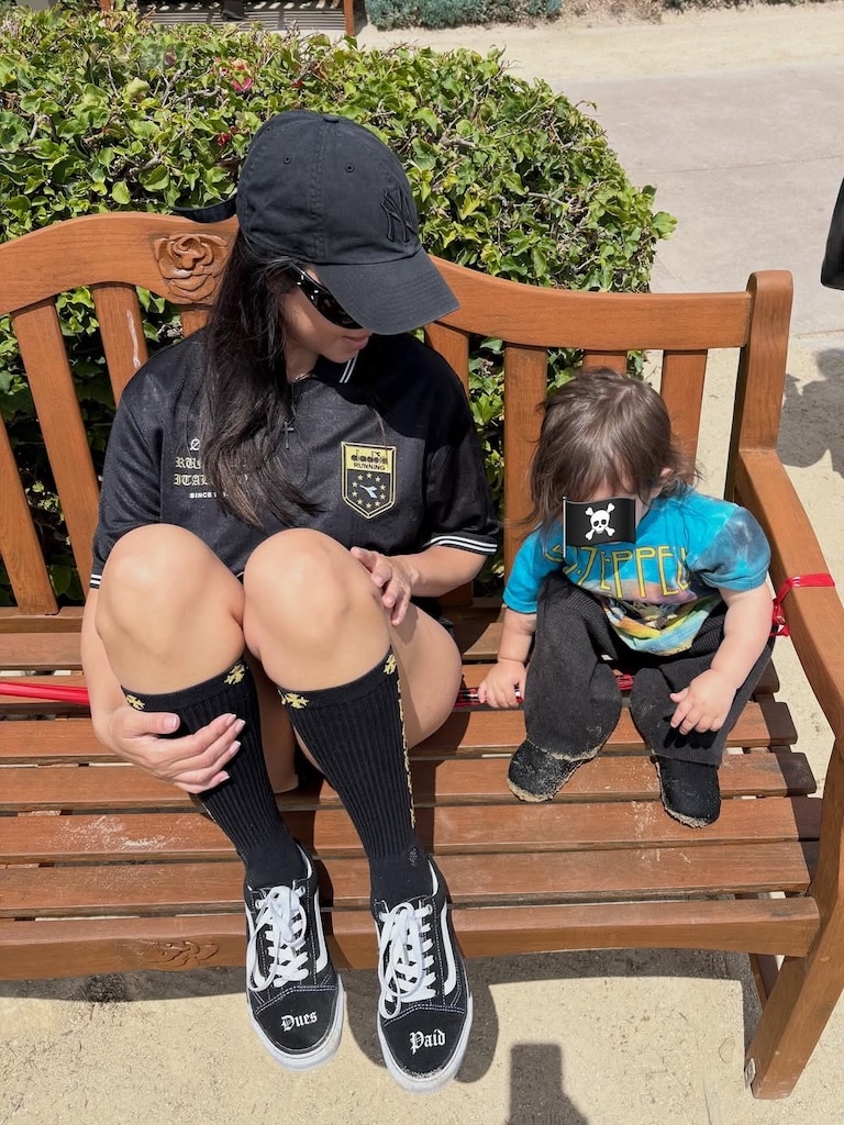 The photos show Kourtney, who is also a mom to Mason, 15, Penelope, 13, and Reign, 10, with her ex Scott Disick, sweetly looking at her young son Rocky as they sat together on a park bench. Another picture captures her holding Rocky’s hand while walking him to the car.