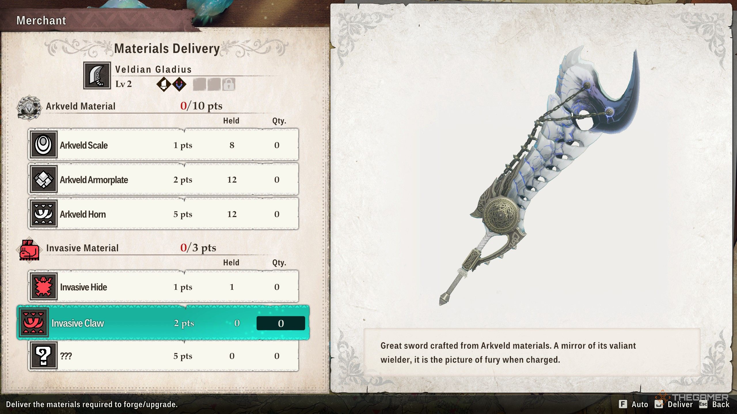 Some items, like those dropped by powerful end-game monsters, will need Invasive Materials to create. These materials arenāt dropped by specific monsters; instead, you get them by defeating any of the Invasive Monsters in their lairs.