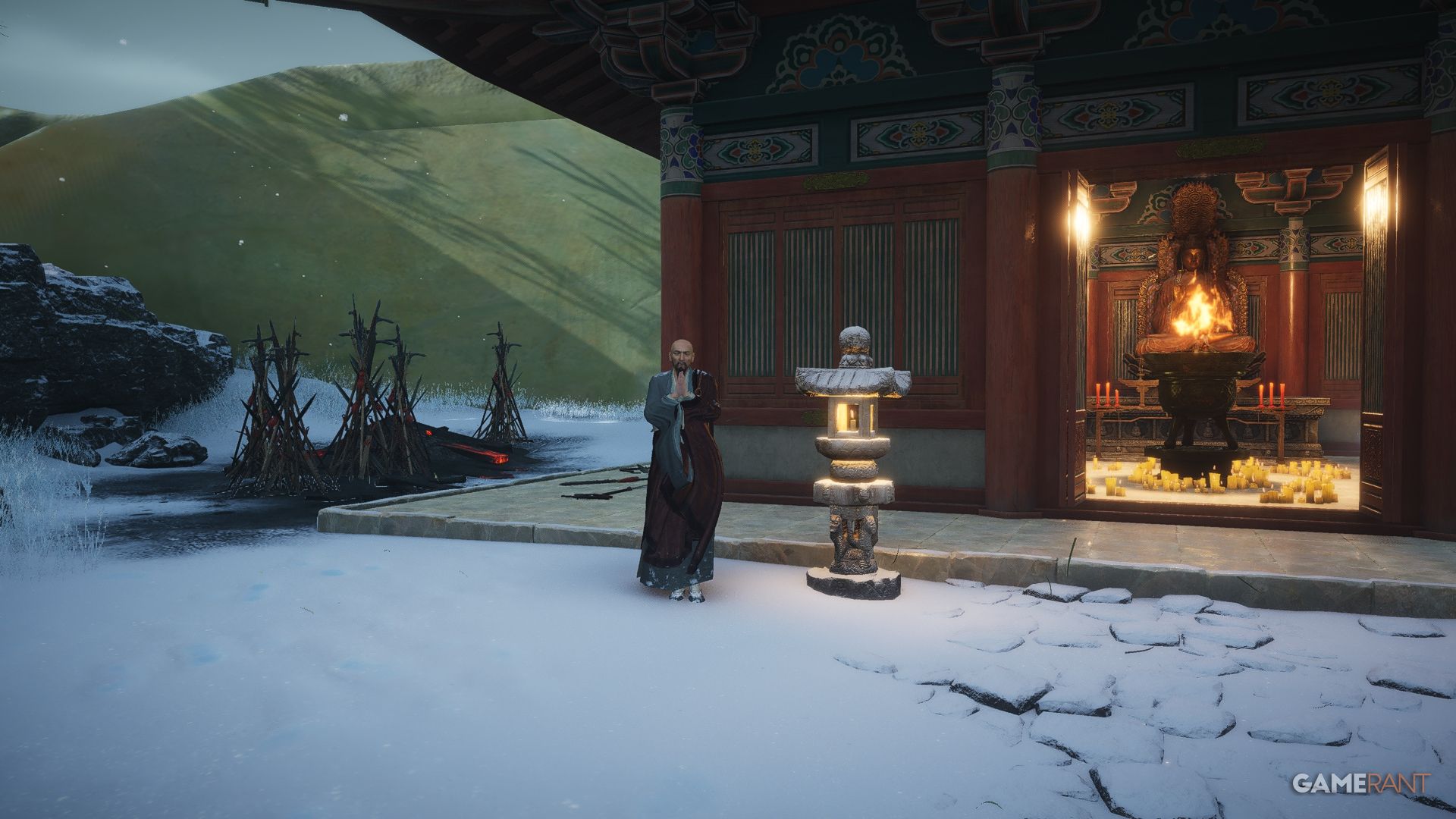 | Night Rain | Remain inside the temple for this Anecdote, where you can have a conversation with an NPC, Jingqian, to learn about what has happened to them and why they’re at the temple. This NPC can only be seen during the late night (Zi) hours. |