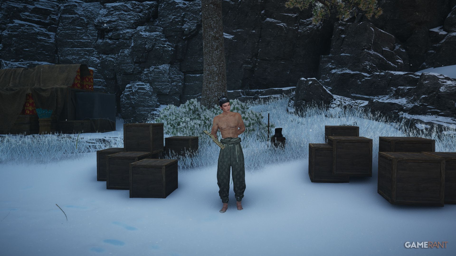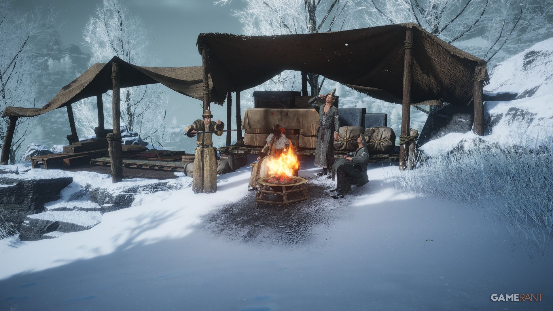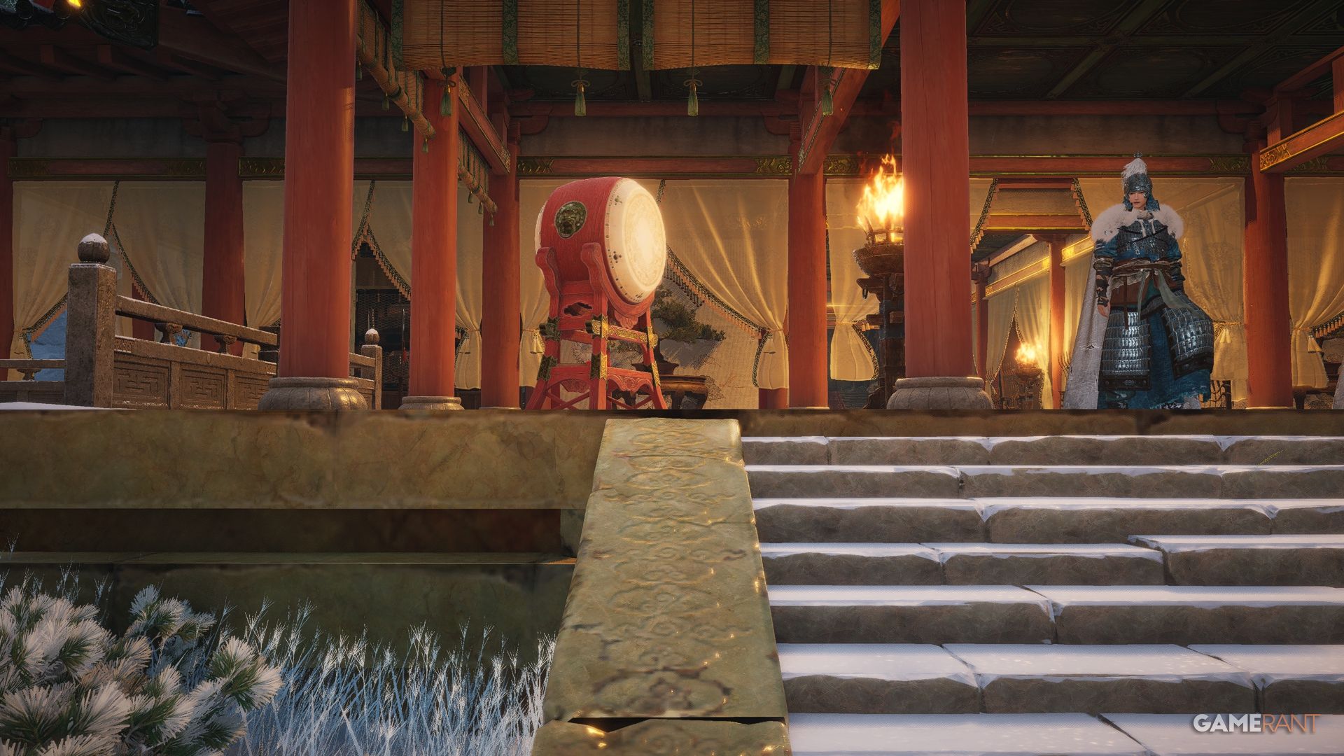 | Turbulent Times | From the Skybrim Market Boundary Stone in Jiuquan, follow the path heading northeast around the mountainside before heading up the stairs on your left and turning left again by the soldiers nearby. Make your way across the pathway and wrap around the building on the left, where you can eavesdrop on an important meeting to get this Anecdote. | |