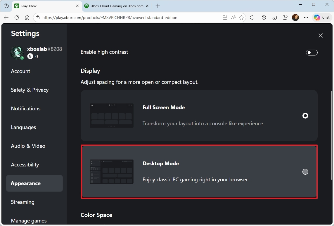 You can also change from the current full-screen view to Desktop Mode. This gives you a more traditional app-like experience, similar to the Xbox app on Windows 11, with a sidebar for easy navigation.