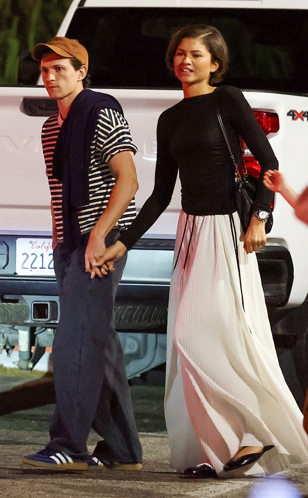 Tom, also 29, was seen holding hands with his partner. He dressed casually in a black-and-white striped shirt, navy pants, and sneakers. He completed the look with a tan ball cap and a sweater casually slung over his shoulders, but wasn’t wearing a ring.